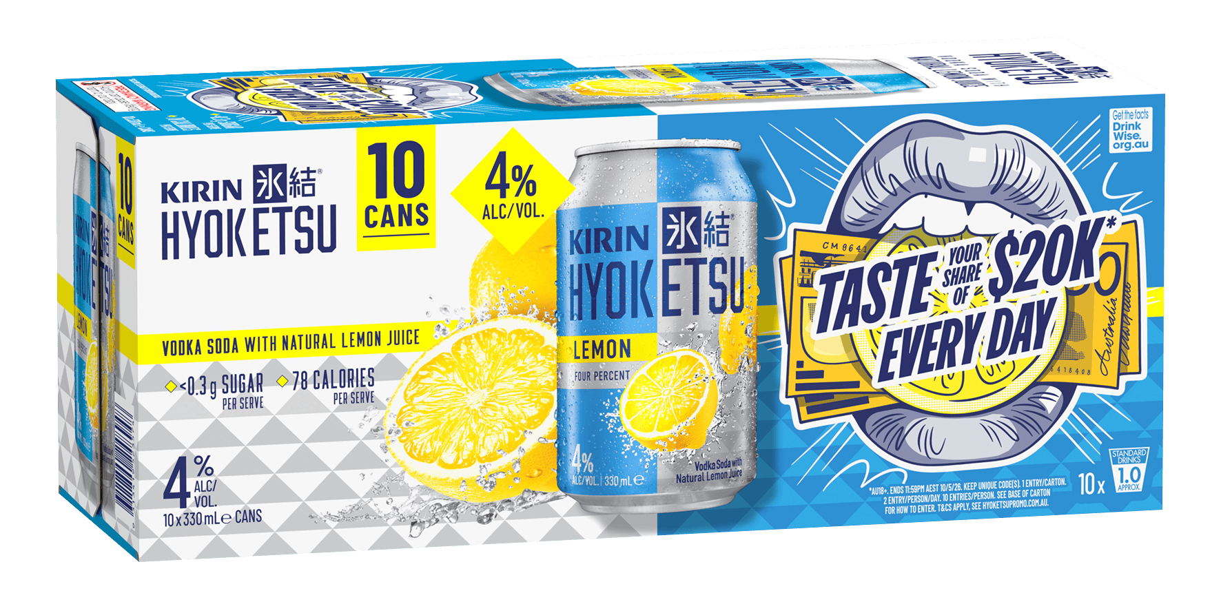 - Purchase a specially marked carton of Kirin Hyoketsu Lemon 4% 330x10-pack or Kirin Hyoketsu Lemon 6% 330x10 pack, to share from any store displaying advertising for this promotion.
